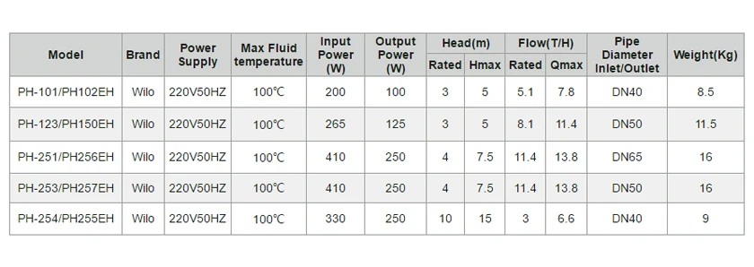 • Germany Wilo, no noise, safe, low consumption, long service life. high temperature resistance,fluid max temperature:100℃.