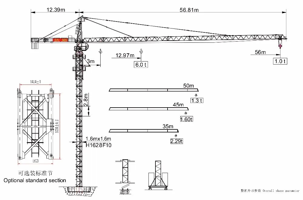 5.Rigid double tie rod suspension large lifting arm, good rigidity of the lifting arm, light weight, small section, small wind resistance, beautiful appearance, several changes in length, to meet different construction needs.