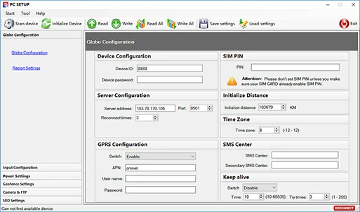 ST2000-V4 tracker could be setup with PC SETUP program, use USB to UART cable. and it is possible to setup with command from server or SMS.
