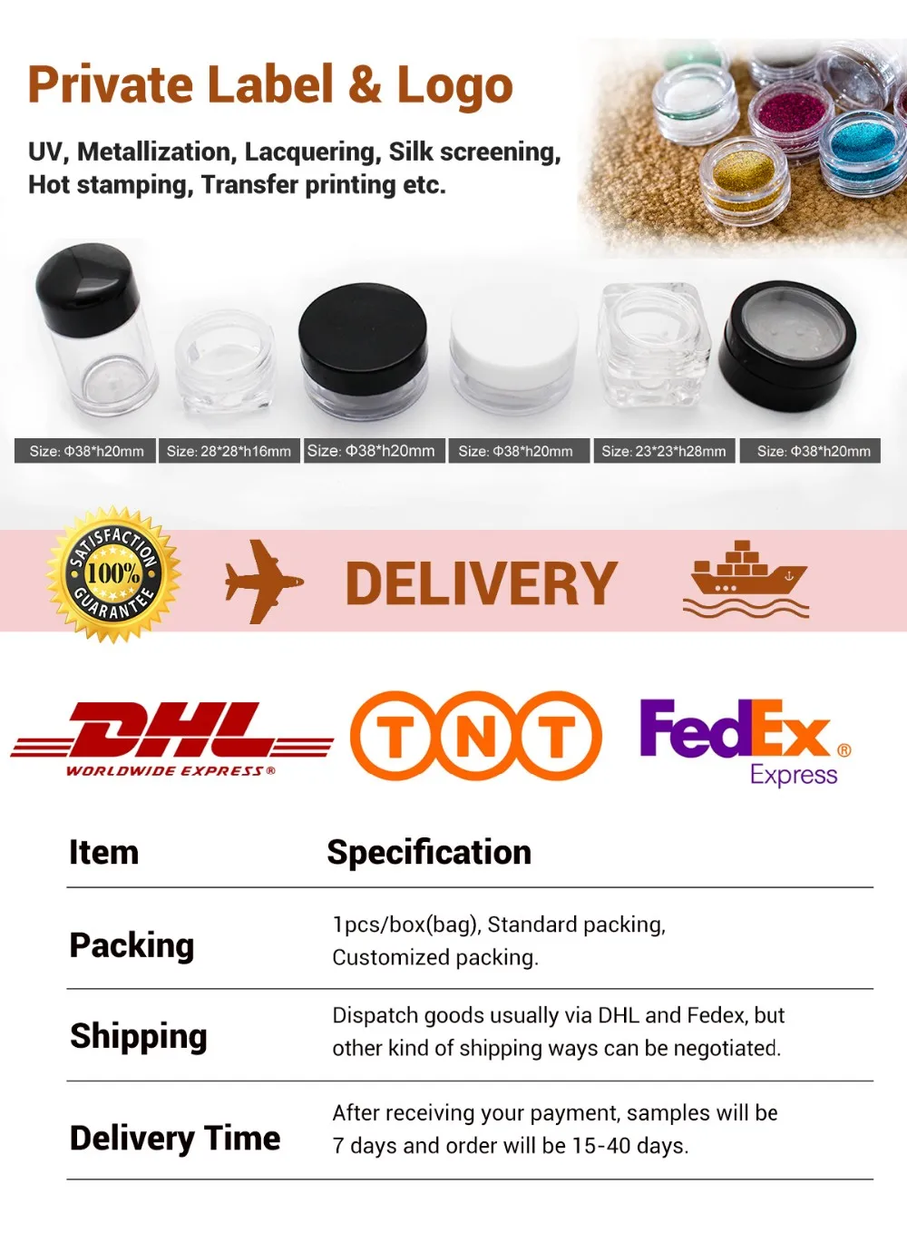 Shipping ways | Usually DHL and FEDEX, and other kind of shipping ways can be negotiated | ||||