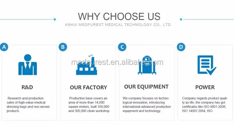 Anhui MedPurest Medical Technology Co., Ltd was established in 2003.The company is committed to the development research and production sales of high-value medical dressing bags and non-woven products.
