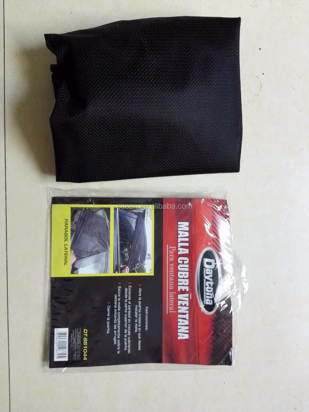 1- Material :the best flexible mesh material, product size is about 43*43CM, you can check our picture, but when put on the glass the max size is 113*53CM, can fit most every car