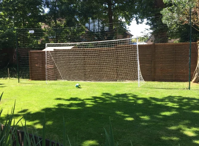 Strong steel poles. No digging required. Push the slots in and stabilise with the guy ropes. High quality bungee. Strong netting. Sturdy and high quality structure.