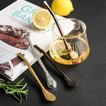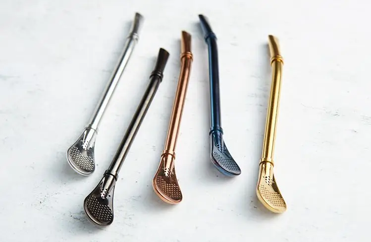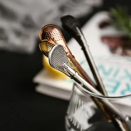 Stainless steel straw with strainer spoon