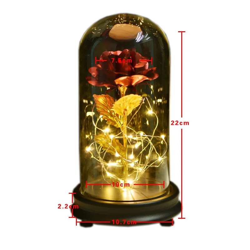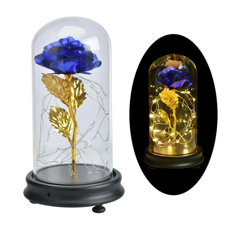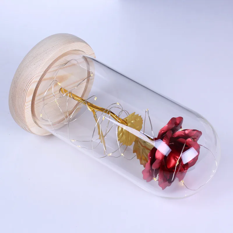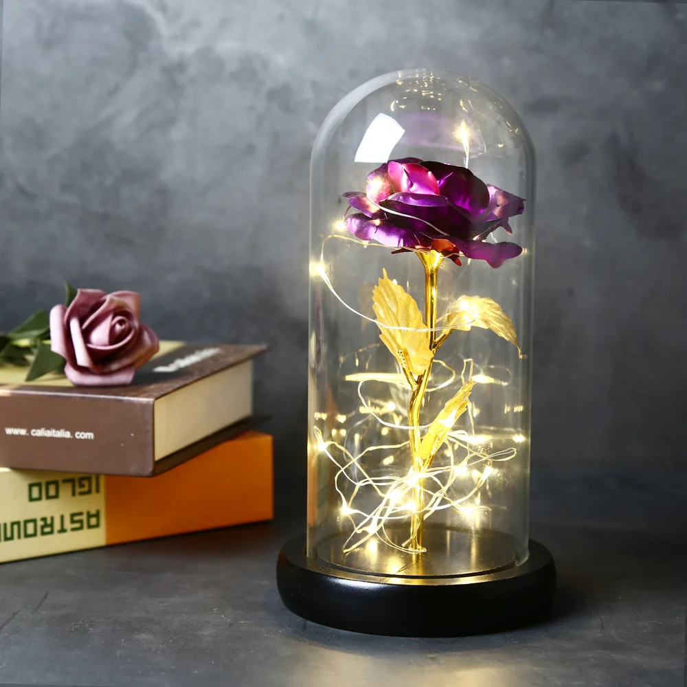 Искусственные подарки на день Святого Валентина, зачарованная Золотая Роза, светодиодная лампа, 24 к, Золотая фольга, Роза в стеклянном куполе, декоративные цветы с подсветкой