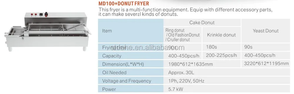 This electric donut machine improves donut quality and reducing costs. It can automatically deposit, fry, turn, and dispense cake donuts/mini donuts. Training and labor requirements are substantially reduced while quality, repeatable donuts are produced time after time.