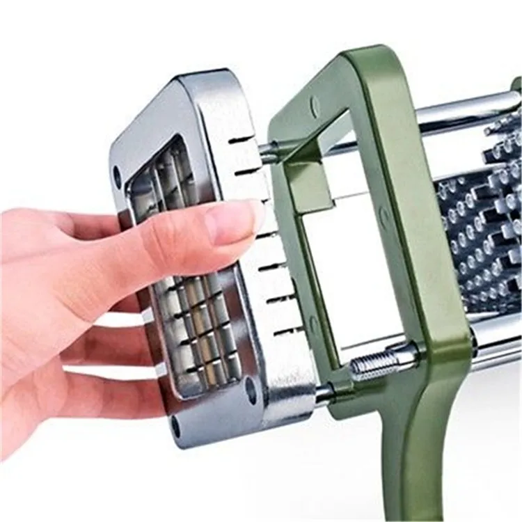 Place a potato on the shield between the pusher block and the blade frame. The shape and design ensures that the potato will remain secure in the cutter. Using one swift motion, pull the handle toward the blade to slice the potato.