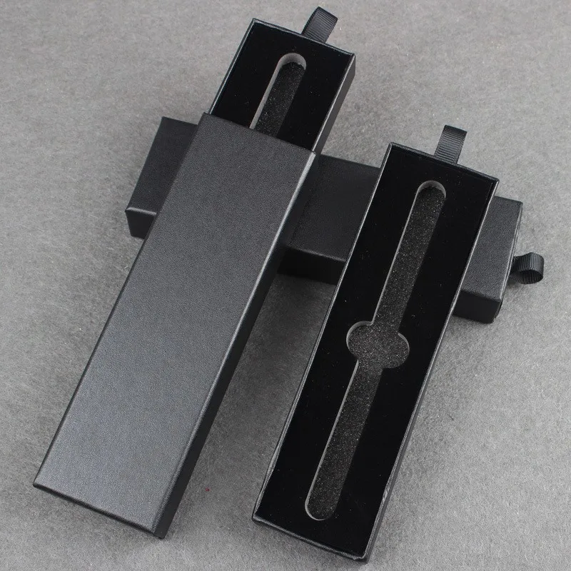 Cheap custom design logo watch black gift drawer rigid slide paper cardboard box with insert velvet foam tray ribbon puller