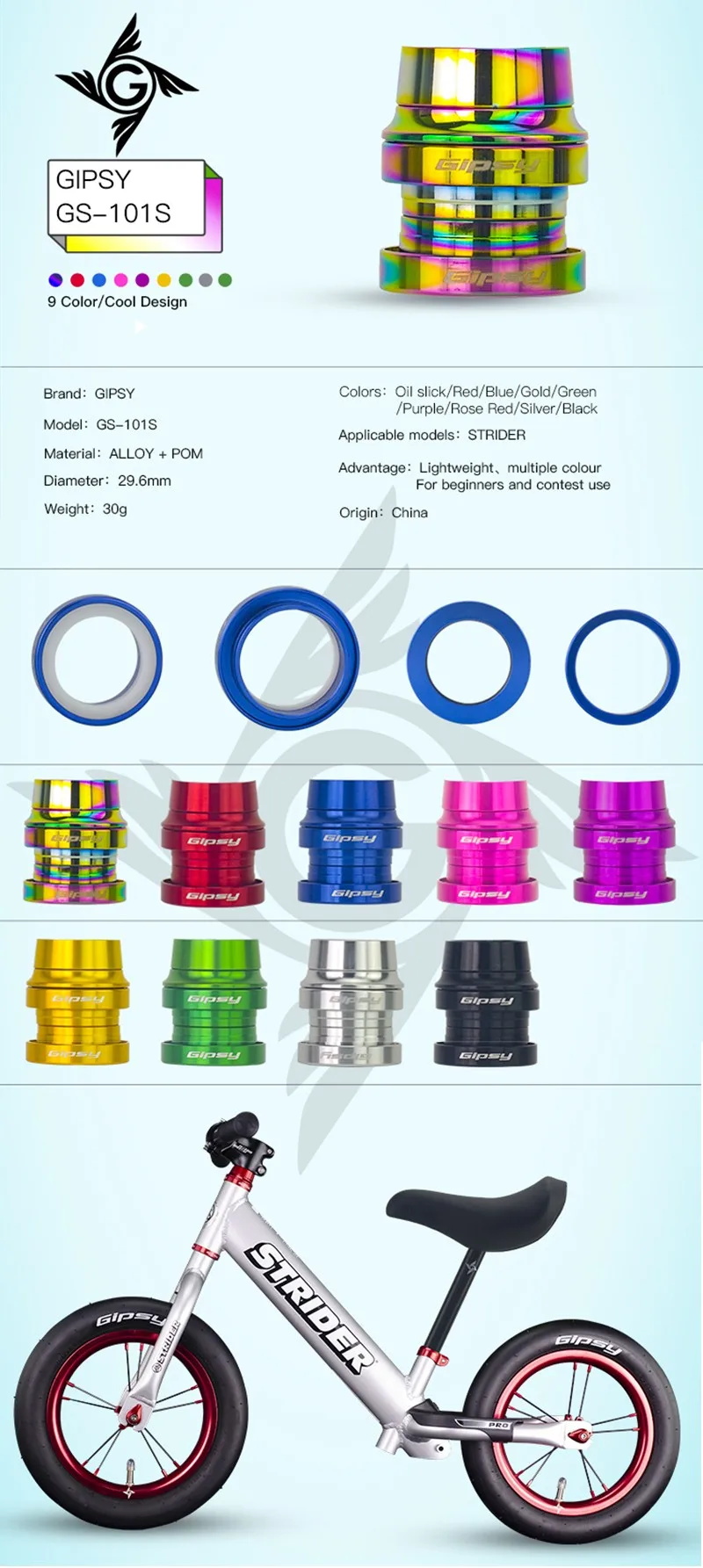 GIPSY GS-101S 29.6mm Headset for push Bike special for S T R I D E R Children balance bike | ||