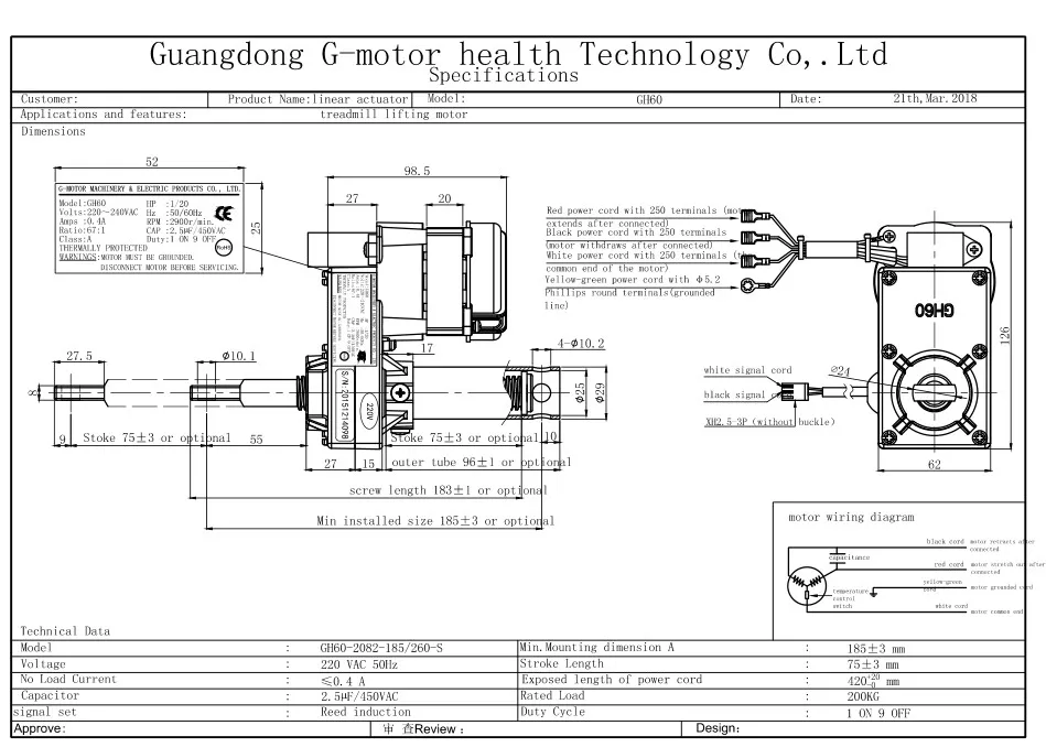 G-motor's GH60 series is a kind of /20HP treadmill incline motor,without stroke switch.It's transmission is depending on screw rob,with reed sensor.