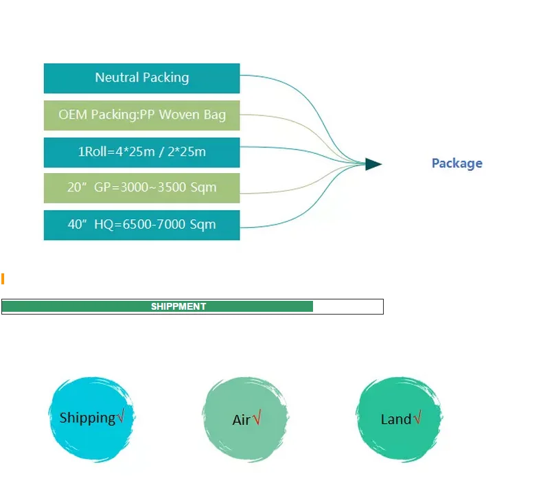 2m*15m/roll, 2m*25m/roll, 4m*25m/roll or customized