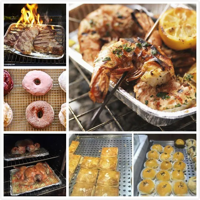 Usually the material of this kind of Stainless Steel Wire Mesh Tray is Stainless Steel 304,with ploshing treatment. These Tray are food Grade, widely used for oven Baking,vegetable washing,fruit drying and dehedration ,BBQ for roasting meat and so on