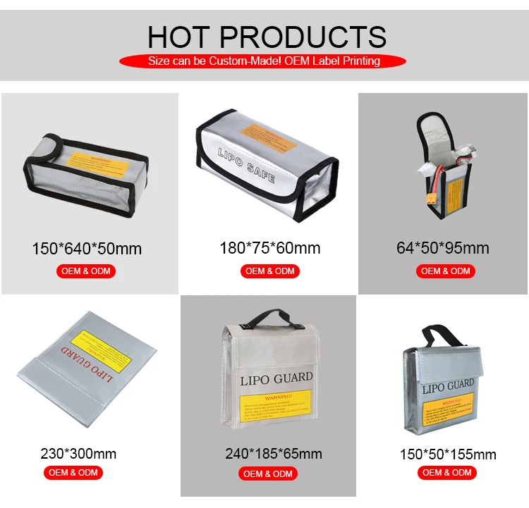 | Product name | Hot wholesale 200 x 100mm RC LiPo Li-Po Battery Fireproof Safe Guard Bag Charging Sack |
