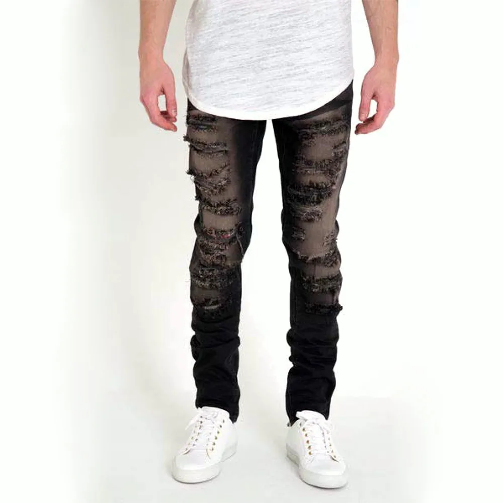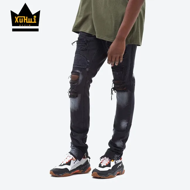 Hot sale fast delivery black name brand new style stretch skinny jeans pent ripped jeans for men
