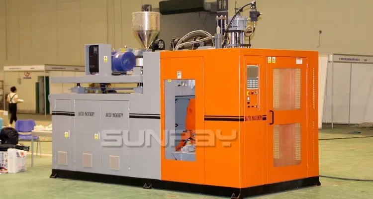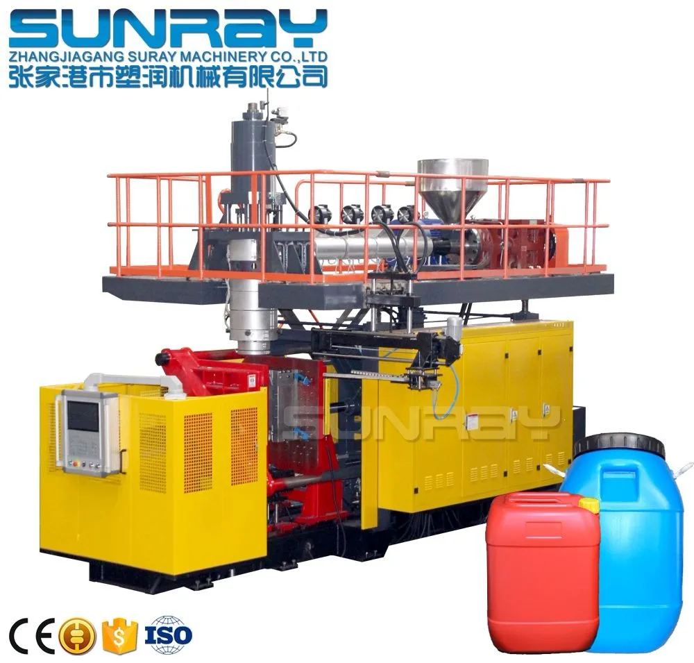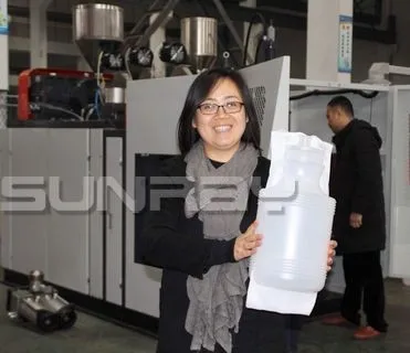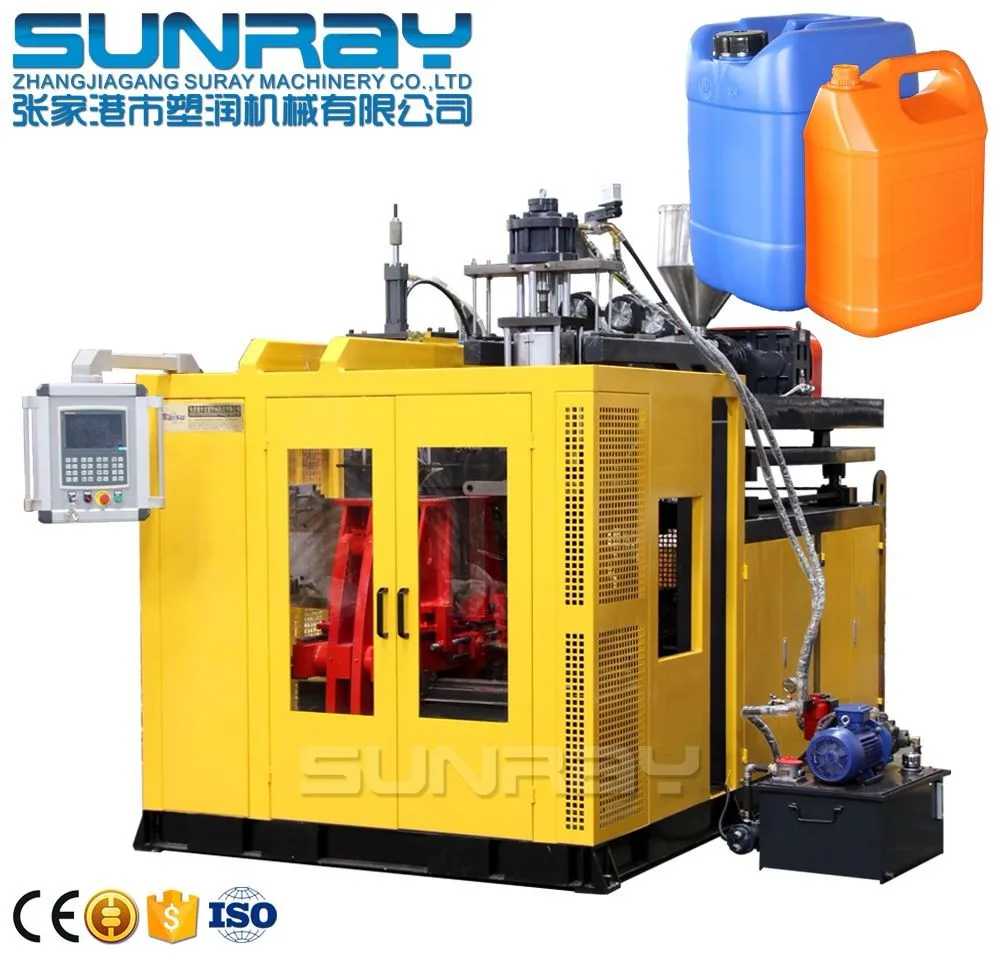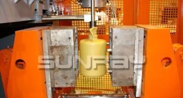 Bottles & Jerry Can Making Machine SRB70S is single station blow moulding machine for 12L as maximum, specially used for 2~10L bottles, stackable jerry cans and containers. With single head for 5~10L jerry cans, with double head for 1L~1 Gallon bottles. SRB70D is popular due to its wide products range, also suitable for small sized abnormal shaped hollow products, high quality and price rate, stable working performance, easy operation and maintenance.