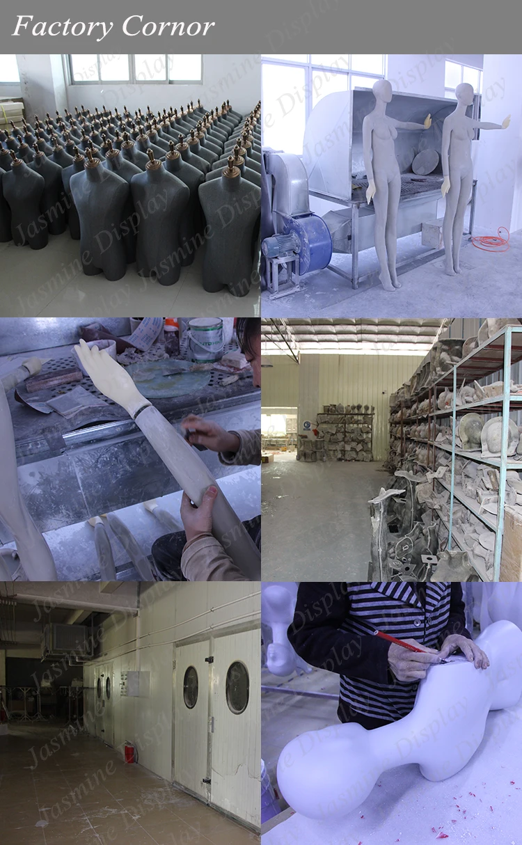 A: We use fiberglass to make all the mannequins. Our main products are full body mannequin, lower body mannequin, upper body mannequin, bust mannequin, dress form, etc. And we also produce some accessories such as foot mannequin, legs mannequins, and some kinds of cute animal mannequins.