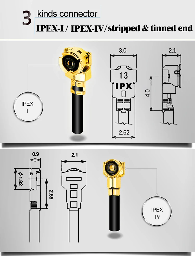 25mm (Length)*4.5mm (Diam) | RG1.13 (10cm/12cm/15cm) or customized | IPEX/UFL/MHF4 etc. |