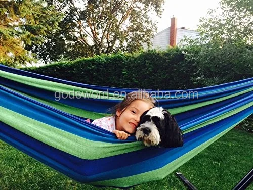 Varied Color hammock folds down to size of a small tote; when folded, it measures 11in x 16in, very compact. Perfect toddler outdoor hammock if you want to take your kids to the park and play! A great outdoor sports blanket to use during your kid's baseball or soccer game. Watch your kids play while seated and relaxed. Are you one of those adrenaline junkees? Bring this outdoor hammock and get a good night's rest close to the comfort of your own bedroom!