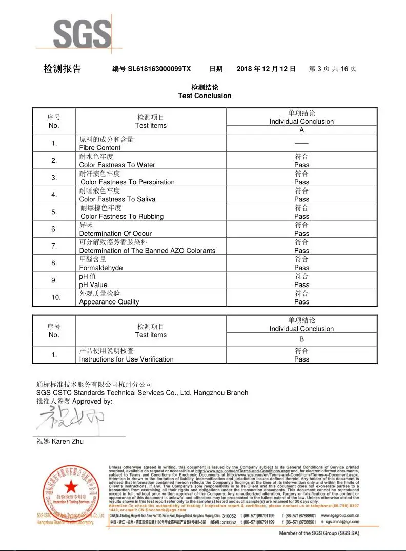 Our products passed the SGS garment test . The production team and QA department strictly control product quality but we still offer after sale service to establish further cooperation. We sincerely welcome you to consult our products and visit our factory for business cooperation .