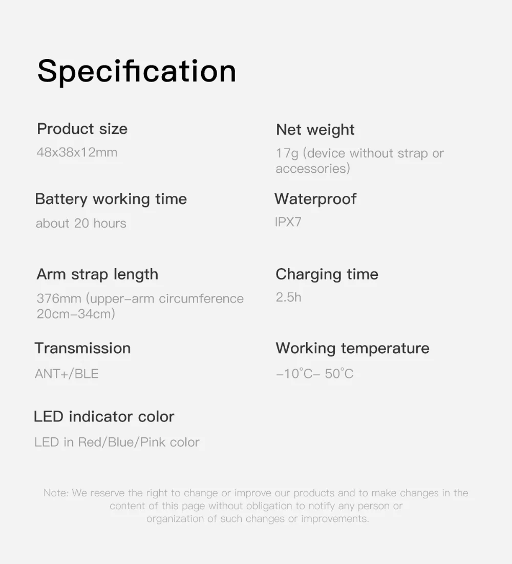 HR60 device,Anti-allergy high quality arm strap,Charging base,Micro USB cable,User manual