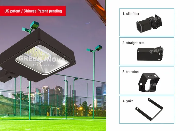 Energy saving up to 80% by utilizing functional sensors such as 0-10V dimming, motion sensor and photocell sensor. Methods of installation have been increased to 4 options: Straight arm mount, Slip fitter mount, Trunnion mount, Yoke mount.