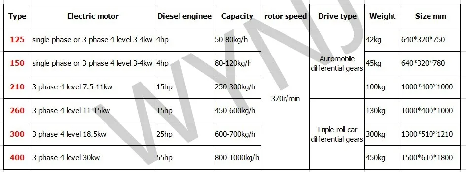 automobile differential gear as transmission, eliminates the slippage of traditional belt transmission, belt wear too fast, and as the different models, a variety of models, is an ideal model for farmers, feed processing.