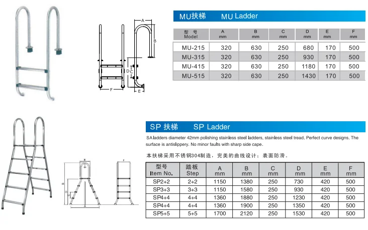 Above Ground Step Stainless Steel Ladder Swimming Pool