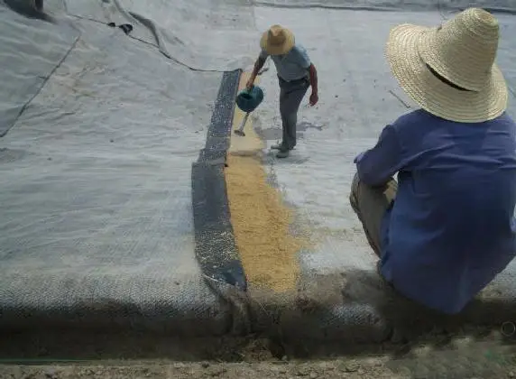 4. In the construction of GM/GCL composite liner, the completed GCL should complete the construction of HDPE film or lay a 300mm thick clay protective layer on the same day. The construction of HDPE film or clay protective layer cannot be completed on the same day, and the GCL should be covered. In order to prevent rain and snow, GCL will be hydrated first and strong sunlight will be exposed to GCL