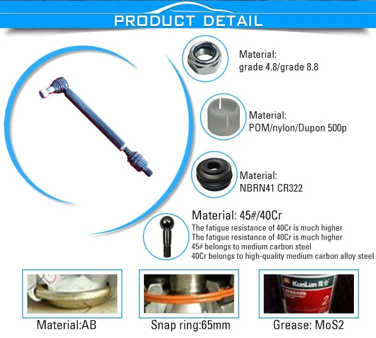 2.Matrial:Body C45 Ball Pin Cr40