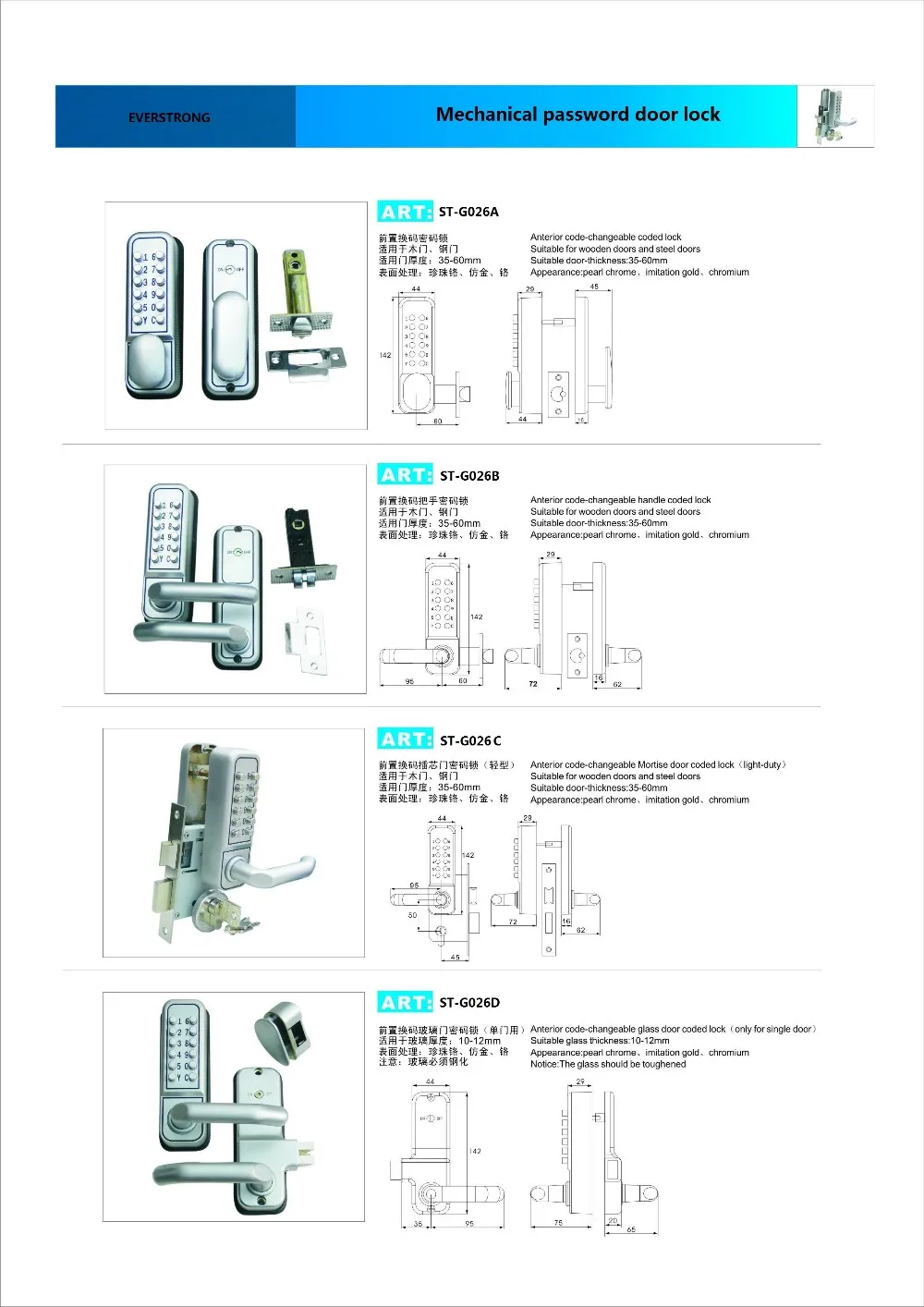 More items of digital door lock(no need power) as below: