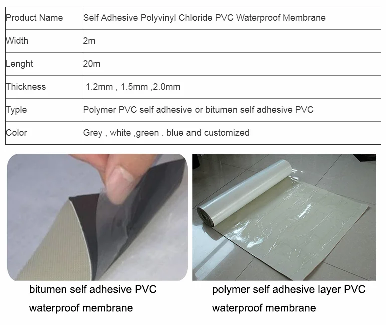 Self adhesive high polymer waterproof membrane is composed of PVC , self adhesive binder , and isolation film , and it can increase the fabric on the waterproof membrane as a reinforcement according to the need . The membrane set of PVC waterproofing membrane and self-adhesive membrane in one, greatly improving the anti-puncture, weathering, self-healing, high and low temperature performance, physical performance is more excellent, more stable chemical properties.