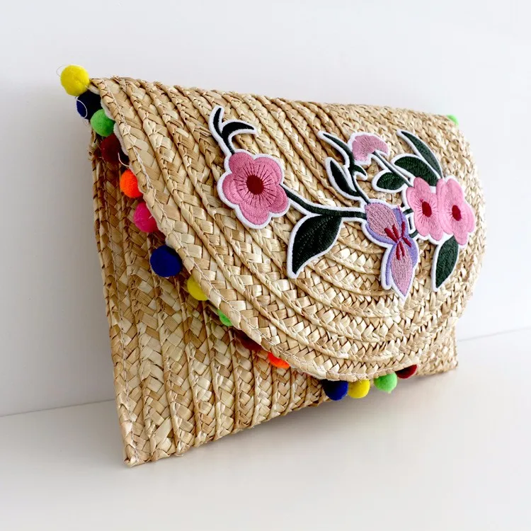 Usage | Bohemian Style Wheat Straw Purse Women Flower Printing Summer Bag Straw Clutch Lady Handbag With Venonat | ||||