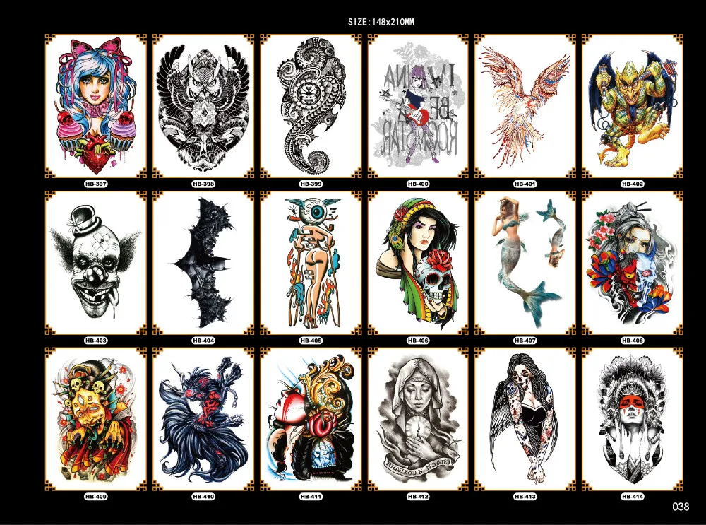 Body Art AdhesiveTemporary Tattoo Paper HB-361 -- HB-400