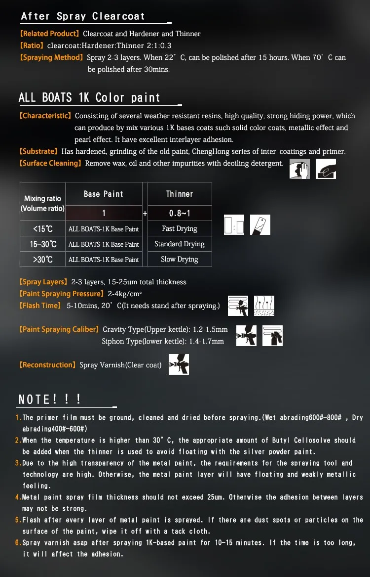 We can provide a full range of automotive refinishes, such as: 1K car paint, 2K solid color paint, clear coating, hardener, thinner, varnish, putty, etc. In addition, we also provide surface treatment and related beauty polishing products. such as: dry sandpaper, water sand, beauty Textured paper, polished beauty care and other products.
