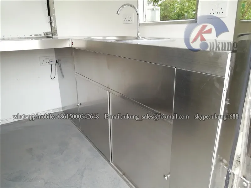 Our trailer (UKUNG new designed AST-210 stainless customized hot dog food cart) is cusotmized.