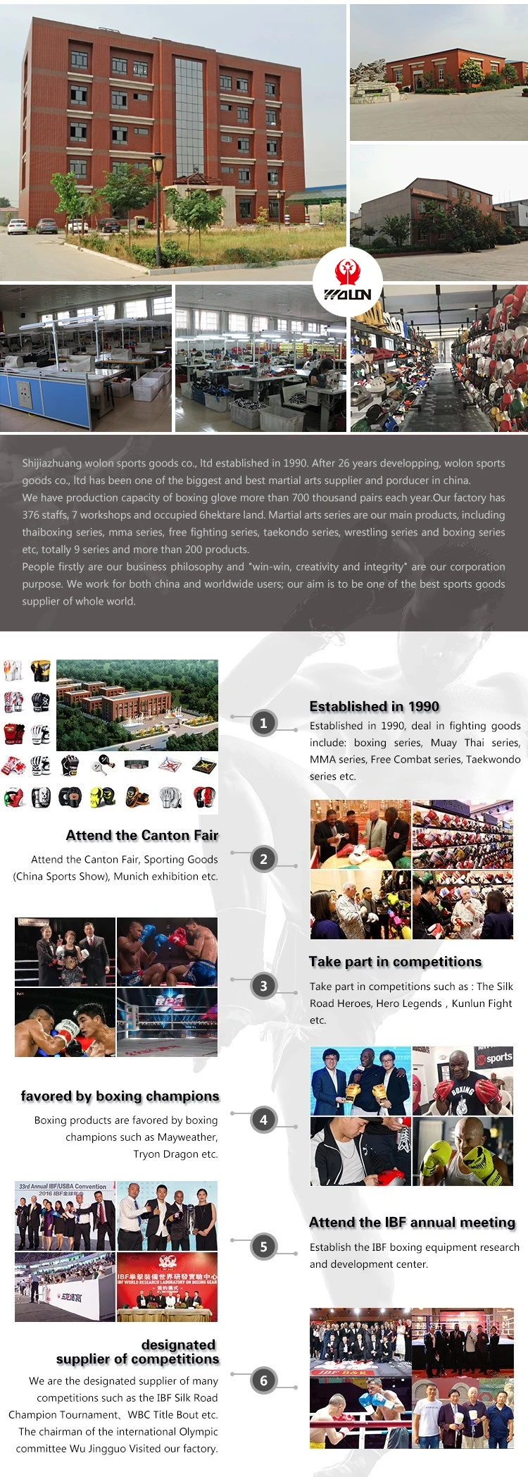 A: Yes , Wolon factory established in 1990, we specialized in the production and research of boxing equipment.