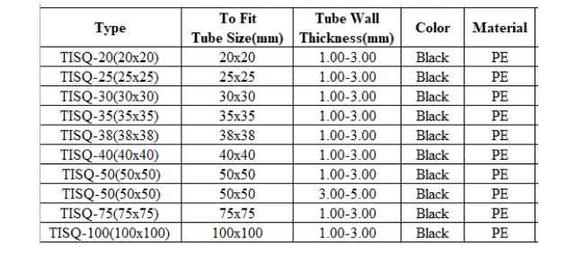 Product Name | High quality 50mmx50mm PP Rectangular black plastic plugs with competitive price |