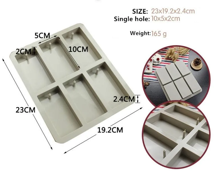 Product Type: | 6 cavity rectangle soy Candles Wax Tablets Silicone Mold for Handmade Dried Flowers Wax Tablets |