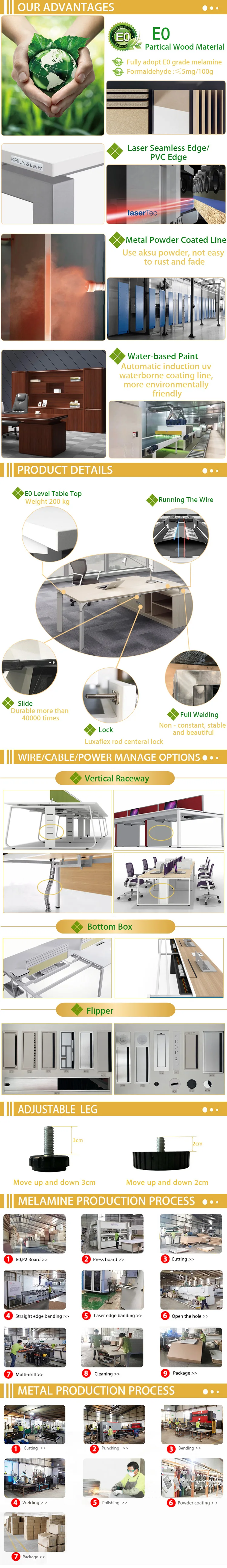 Style: latest modern design Table top: 25mm E0/P2 MFC with 2mmthk PVC edge band or ABS edge band steel Legs: U shape with interpon powder coatedFrame – Full aluminum frame DESCRIPTION: 1. Table top:25mm E0/P2 MFC 2. 2mmthk PVC edge band or ABS edge band steel 3. size:1400*700*750 4.accessories: rail slide