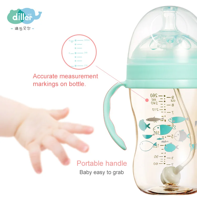 4. The newborn baby milk bottle is made of the newest and safest material PPSU, BPA-free, non-toxic and odorless, high temperature resistant up to 180 degree.
