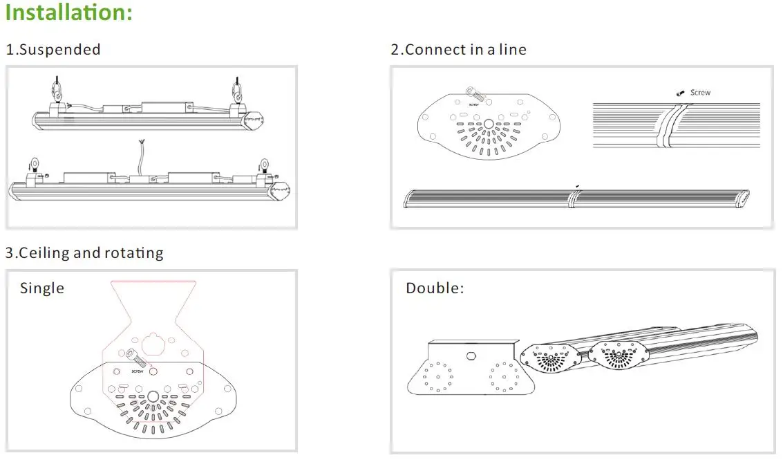 LED Linear High Bay Light are recommended as Hangars, Natatorium, Warehouse, Gym, Stadium, Factory Building, Industrial area, Workshop, Manufacturing facilities, Storage Areas, Grocery stores, Garage lighting