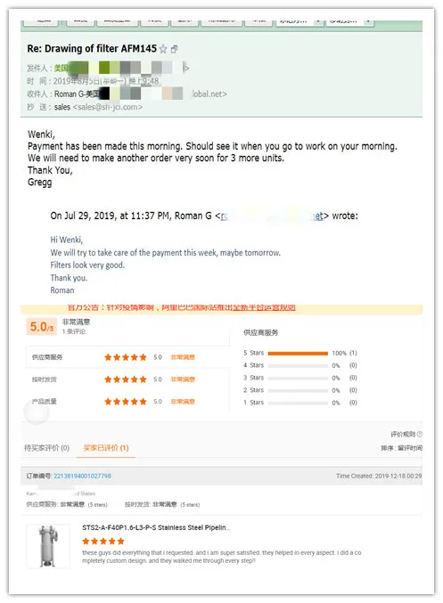 2. We have strict control on all processes ranging from R&D design, production, inspection and after-sales service.We are a global professional company. Over the years, we have possessed many R&D, management and manufacturing centers, marketing and service networks throughout the world. Headquartered in Shanghai, the company has two production bases in Kunshan, Jiangsu and Taiwan, China, and has agents in Singapore, Malaysia and Myanmar, etc. In the future, JCI will become a leader in the field of automatic filtration system and industrial purification technology, to enable efficient and safe filtering products to serve the whole world.