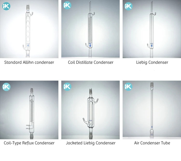 The inner glass tube of the glass allihn condenser is with a series of spherical bubbles to maximize the thermal contact with the cooling water.