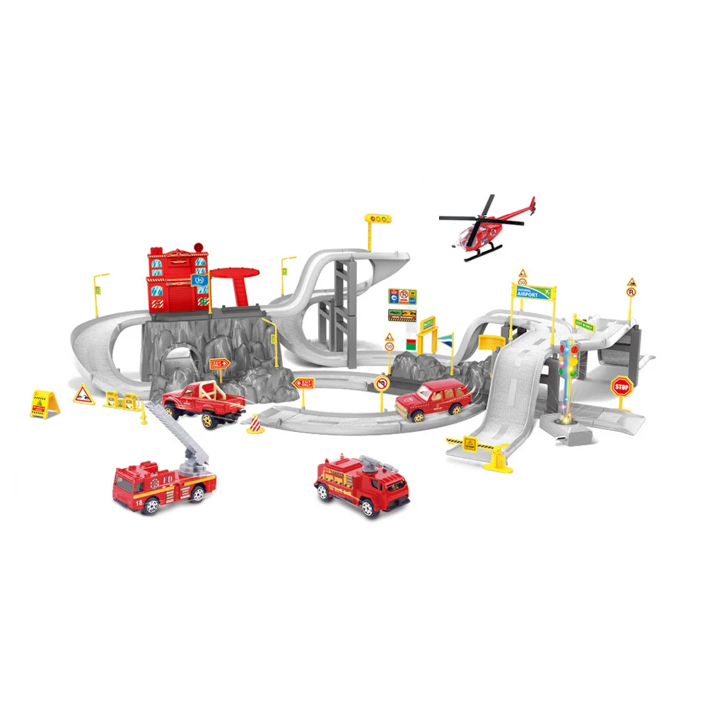High quality metal model car parking lots kids fire station set car parking garage toy.