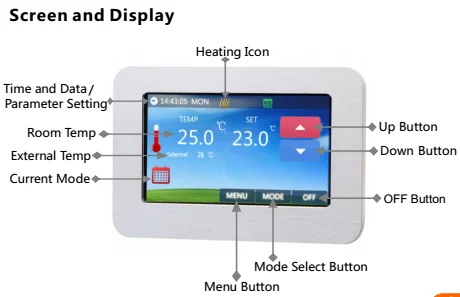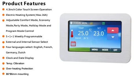 Touch Screen Programmable Heating Thermostat with LCD Screen