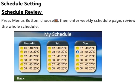 Weekly circulation, it is possible to set 6 periods called events each day with corresponding pre-set temperatures. You can select “period control mode” or “manual mode” according to your requirement. The thermostat is recommended for control of on/off valve actuator used in water-based system.