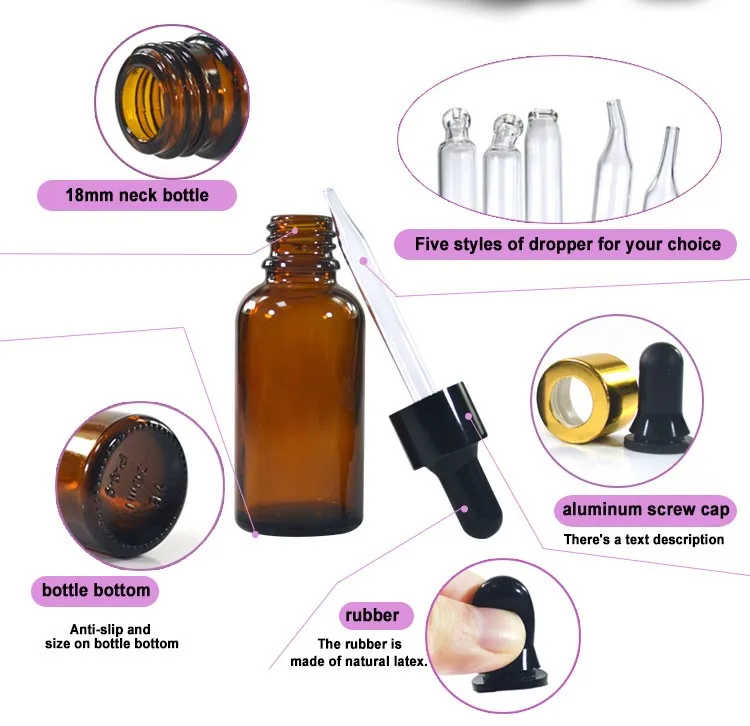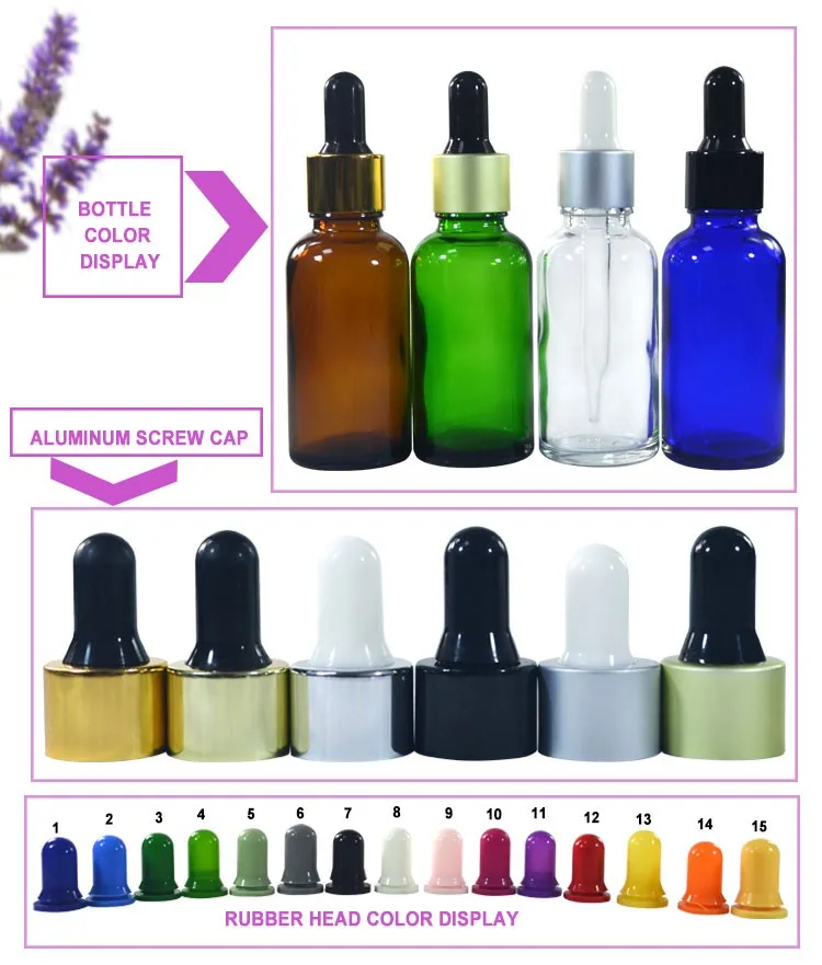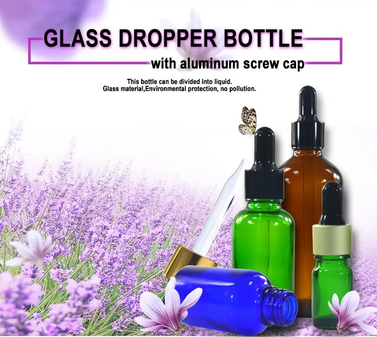 clear amber green blue 5ml 10ml 15ml 20ml 30ml 50ml 60ml 100ml 120ml glass dropper bottle with aluminum cap can be used for skin care essential oils, smoke oil ,massage oil ,essence liquid and other liquid packaging etc.