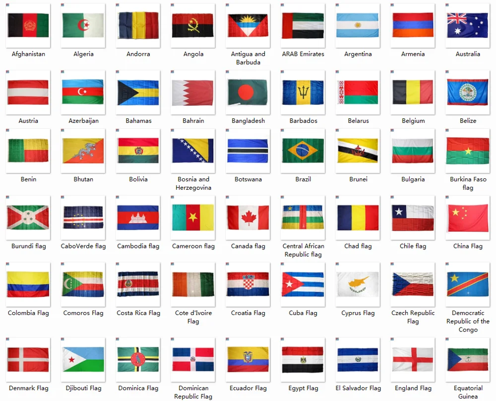 | Common Country Flag size: 3'x5'; 4'x6'; 2'x3'; etc. | |