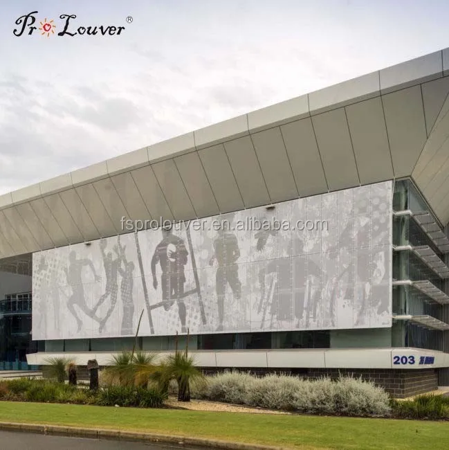 PROLOUVER Anodized/AkzoNobel powder coating/PVDF perforated metal panel used for facade curtain wall,sun screen,handrail,interior decoration, screening. And it can be hollowed according to your sample or CAD drawing. It can also be folded, curved according to request.