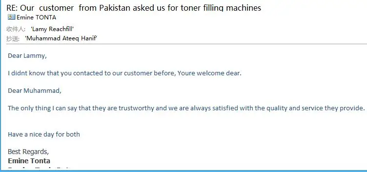 Reachfill was set up in 2003,the Leading Toner & Inkjet cartridge Production Equipment Manufacturer in China,90% Chinese printer consumable factories use our machines and we also export to all over the world, including:USA,Germany,UK,Russia,Japan,Poland,Spain,Turkey,India,Malaysia,Singapore,Pakistan,Vietnam,Thailand Etc;attended kinds of shows in worldwide